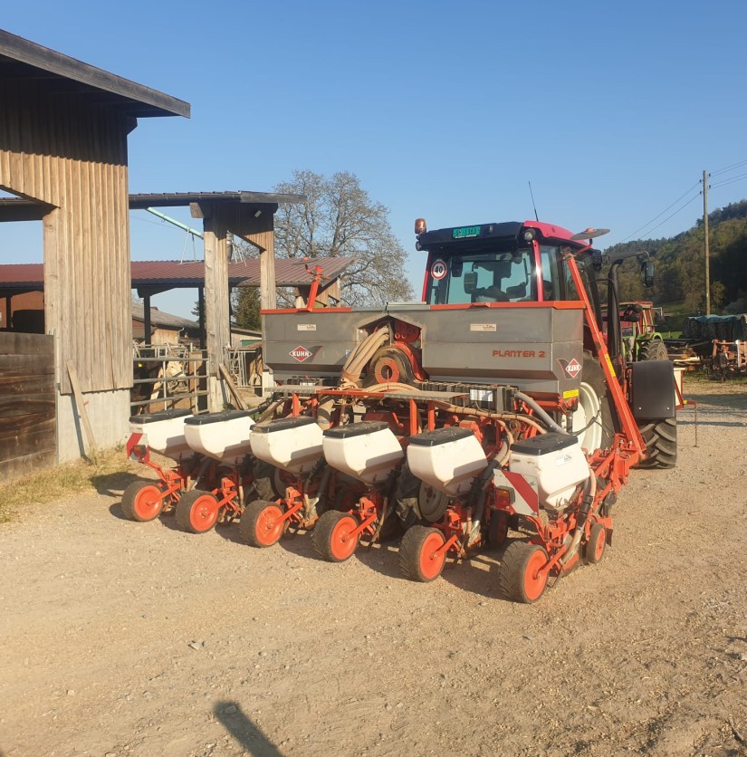 Neu bieten Patrick und Philip Säen in Lohnarbeit an. Sie säen Zuckerrüben, Sonnenblumen und Mais an. Bei Mais besteht zusätzlich die Möglichkeit der Unterfussdüngung.